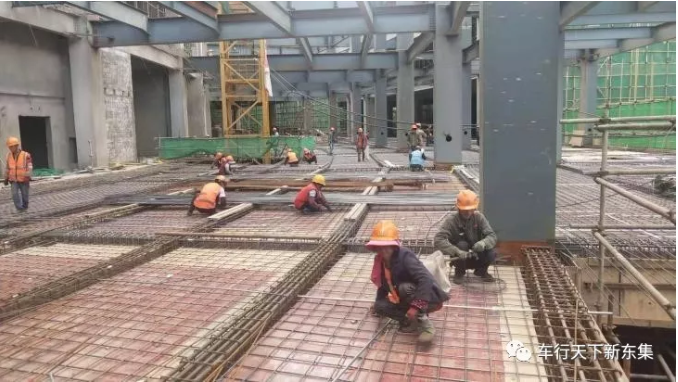 1、A座裙樓20#~11#板塊及汽車(chē)坡道鋼結構安裝完成;8#、9#板塊夾層樓板混凝土澆筑完成,夾層頂板施工;10#11#板塊夾層頂板混凝土澆完成;20#板塊裙樓負三層頂板施工。