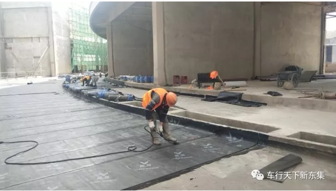 4、六層屋面內環(huán)2#~7#板塊防水卷材施工。