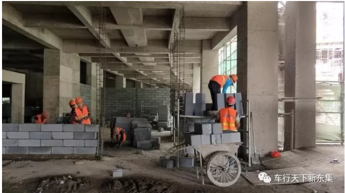 3、A座核心筒負二層至七層二次結構施工完成,樓層清掃準備移交內裝施工;負三層砌體二次結構施工收尾。